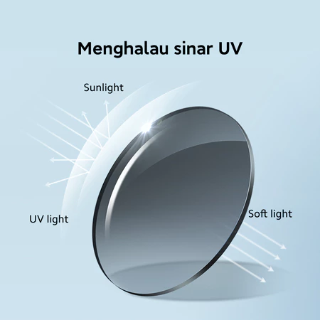 Lensa dengan perlindungan UV 100% melindungi mata dan kulit dari sinar matahari berbahaya. Sinar UV dan cahaya terang tidak akan mengganggu kenyamanan visual kamu, sehingga kamu bisa tetap bergaya dan beraktivitas tanpa khawatir.