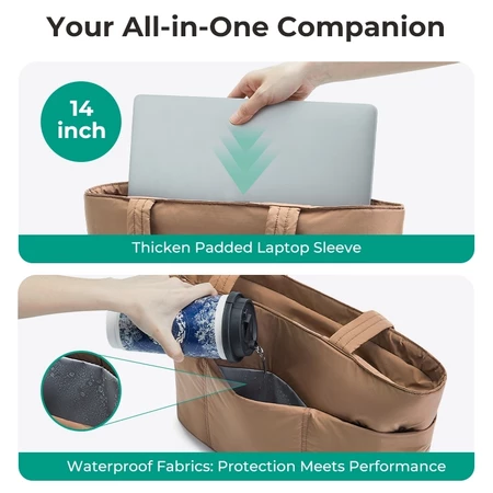 BAGSMART Tote Bag Wanita Travel 14inch Laptop Puffy Tas Kuliah Shoulder Bag Kantong Depan Bagsmart Official Store