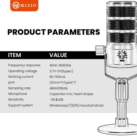Spesifikasi MIXIO TL-H1 Condenser Microphone USB Type-C with RGB Streaming & Gaming Mixio Official Store