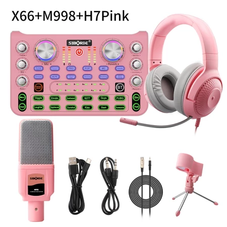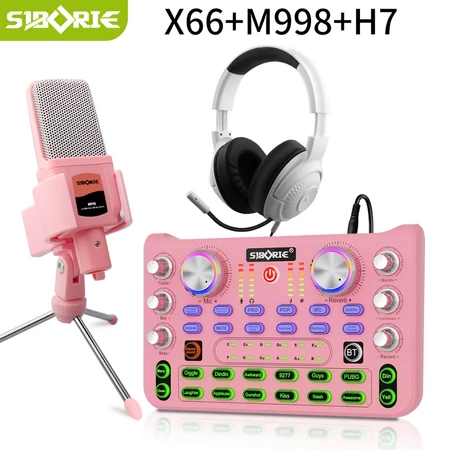 Siborie X66 Soundcard+M998 Mic+H7 Headphone Paket Lengkap 3 in 1 full set Mixer Bluetooth sound card for Streaming Langsung Siborie Official Store