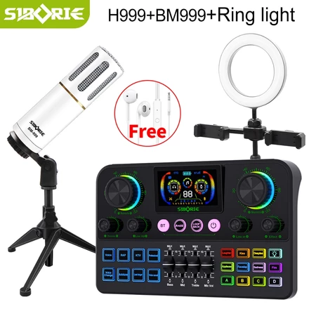 Spesifikasi Siborie H999 Soundcard+BM999 Mic+Ring Light Paket Lengkap Set Bluetooth Sound Card Mikrofon Presenting Headset Siborie Official Store