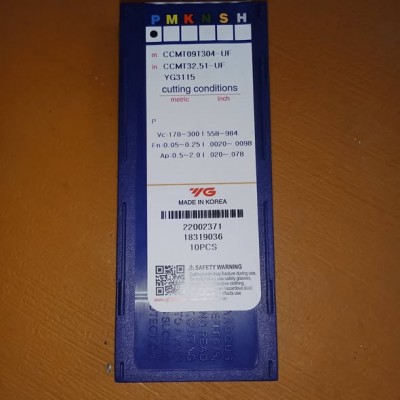 Insert Bubut Besi Baja CCMT09T304-UF YG3115 Merk YG-1 Korea
