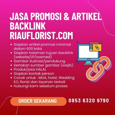 Riau Florist bersama Bertravel Media menghadirkan layanan kolaborasi promosi digital yang dirancang untuk membantu pelaku usaha meningkatkan visibilitas bisnis secara online. Layanan ini berfokus pada pembuatan artikel promosi berkualitas yang dilengkapi dengan backlink menuju halaman tujuan yang relevan, sehingga mendukung strategi pemasaran digital secara berkelanjutan.