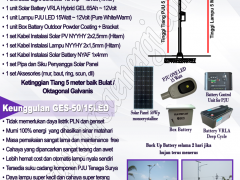 PJU Tenaga Surya 15 Watt sebuah alternatif penerangan jalan umum atau penerangan daerah tempat wisata atau taman kota sebagai lampu penerangan dan memperindah lokasi dengan mengaplikasikan lampu penerangan listrik tenaga surya yang praktis, hemat energy, bermanfaat dengan langkah “GREEN ENERGY” dan cocok untuk daerah yang belum ada sumber listrik PLN maupun sumber-sumber listrik yang lain. PJU Tenaga Surya 15 Watt ini menggunakan lampu PJU LED dengan asumsi daya 15 Watt Merk “ONE LED”, dengan lumen cahaya setara lampu konvensional daya 100 Watt. PJU Tenaga Surya LED 15 Watt ini sangat hemat karena memakai daya lampu yang super kecil tetapi cahaya lampu sangat terang sehingga sistem Solar Panel dan Solar Battery bisa diperkecil kapasitasnya. Kami sarankan segera ganti lampu PJU anda yang boros dengan lumen kecil dan cahaya kurang terang tersebut dengan lampu PJU LED super hemat energy ini.