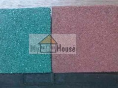 Rubber mat tiles ukuran 50cmx50cm warna hijau dan merah.