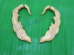 Spesifikasi Yellow wooden tribal bird cheater gauge earrings c0033wy