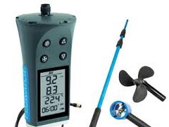 Flowatch KIT includes Display, 25mm air impeller, 60mm water impeller, telescoping rod, and carrying case