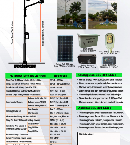 Spesifikasi PJU Tenaga Surya 30 Watt