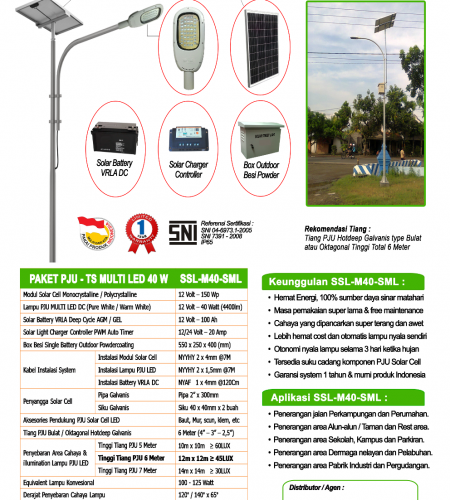 Spesifikasi Produk PJU-TS SML LED (SSL-M40-SML) :